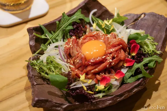生蛋黃使牛肉口感更加濕潤好入口,也揉合了醬料的鹹香。而和牛細緻柔軟的口感、牛肉的香氣、整體的鮮甜,自然不在話下,這樣的搭配簡直無可挑惕