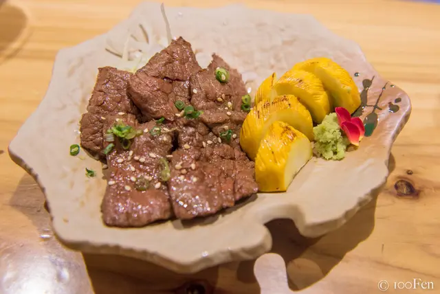 精選的和牛翼板是一個口感較鬆軟的部位,咀嚼之間更有滿滿香氣。鹽烤的方式輕輕的為牛肉提味,恰到好處的熟度以及厚度呈現出澳洲和牛的獨到之處。也可以試試和櫛瓜、哇沙比做搭配