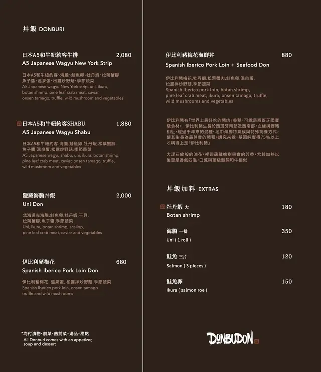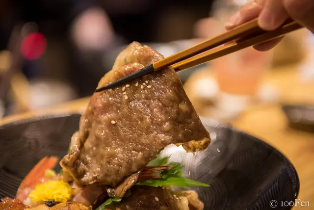 這是下一道丼飯的A5和牛紐約客,油花實在太美麗,切面也非常漂亮,讓我們忍不住拍了好多張照片紀念