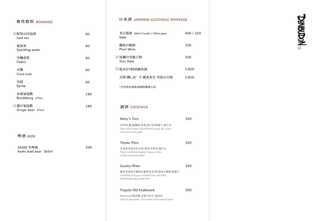 首先來杯飲料解解渴,香甜的梅酒是女生的好選擇,喝起來沁涼微醺。不喝酒精的朋友也很推薦可以點來自澳洲的水果氣泡飲,這次喝到的是葡萄柚口味,也是甜甜的好喝(Menu我放在文章末供參考)