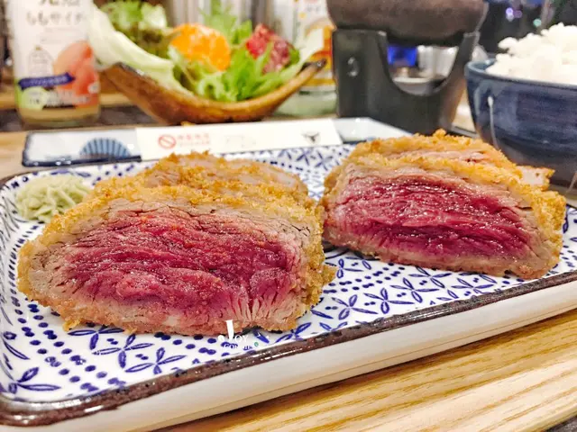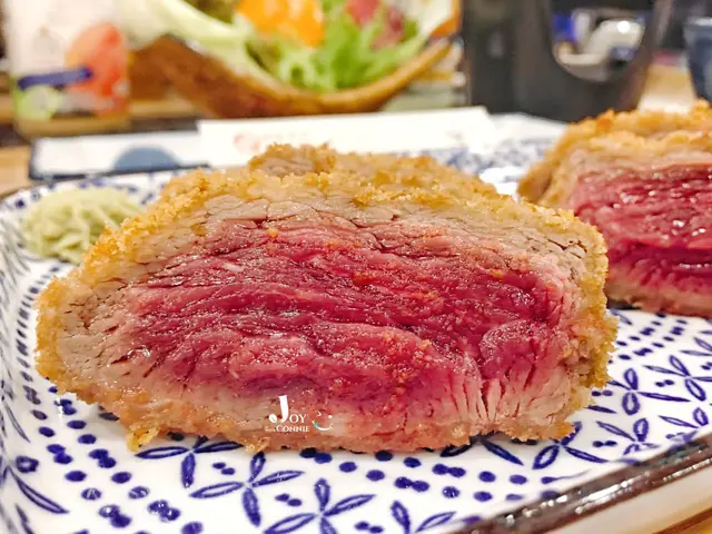 🌸口妮小心得:定食有生菜沙拉、味噌湯、甜點、一碗越光米麥飯,吃完一份的量大約7-8分飽,外酥內嫩的炸牛排讓我一口接著一口,最後的醋凍更是做了個完美的ending👍🏻。餐點最低 $298 的價位,能吃到這樣份量和品質的牛排,覺得很滿足呢💗