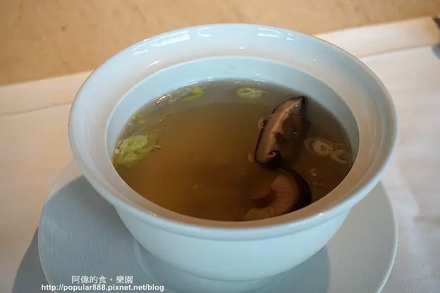 湯品是香菇雞湯,竟然瀝到這麼清澈少油,喝起來卻有溫厚的底蘊,雞湯的鮮與香菇的香都在口腔中感受得到。
