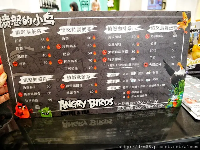 這個雖然是憤怒鳥,但是飲料的價格並不貴喔!最便宜的只有35元,