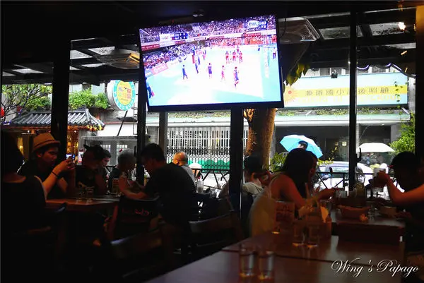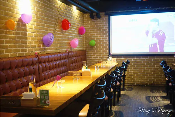 店內前後各設有大尺寸電視及投影螢幕,播放運動賽事。