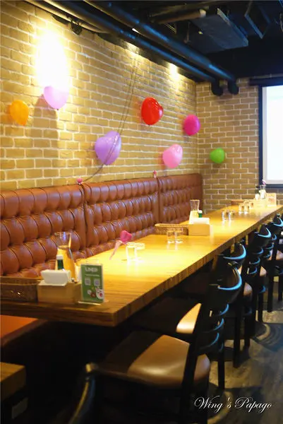 靠近門口的吧檯上頭黑板則畫上有趣塗鴨,天花板上則是掛有各國小國旗裝飾。