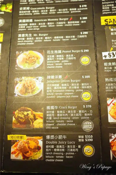 menu,上頭有new標示的代表近期新推出菜色。
