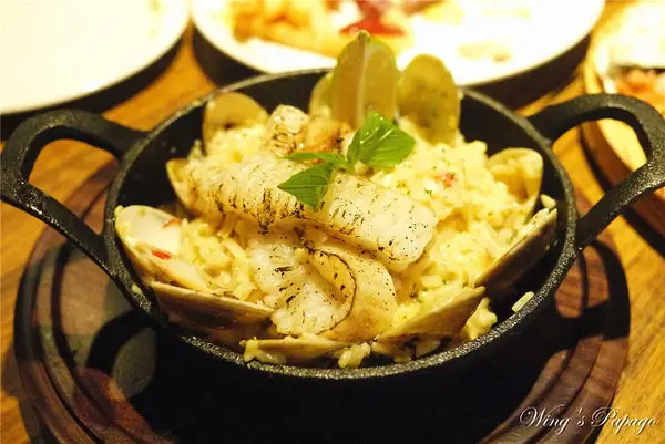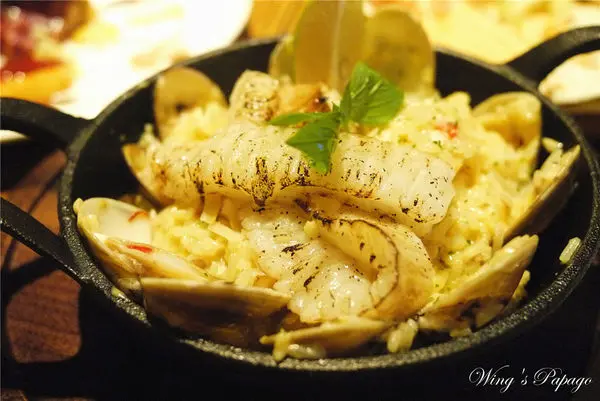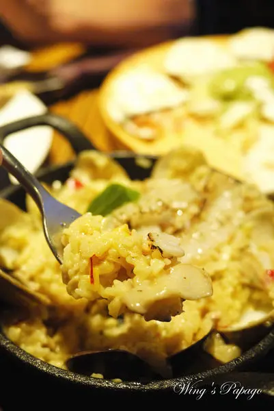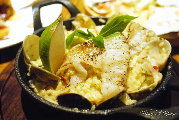 燉飯使用鑄鐵鍋熱騰騰送上桌,份量看似不多,但吃完比想像中飽足呢!