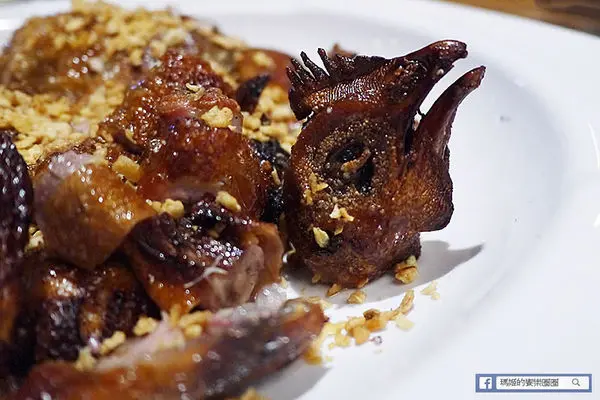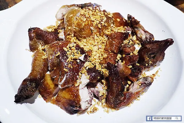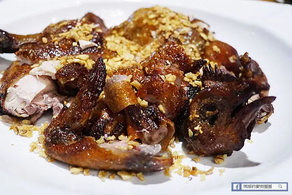 整道菜保留雞隻的完整切好擺盤上桌,上頭再灑上大量蒜酥,香噴噴的味道很超誘人!
