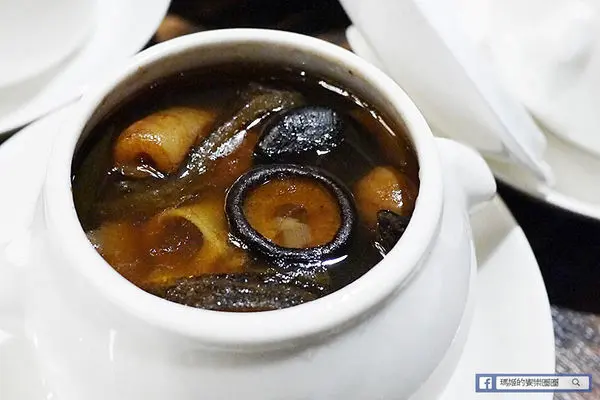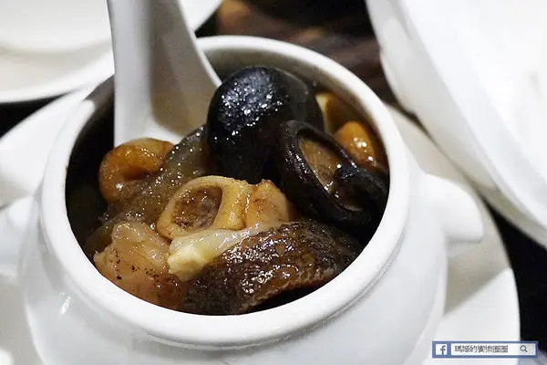「佛跳牆」個人份小小一盅,它的湯頭沒有雜質,以食物的自然風味呈現,和一般喜宴吃到的味道不太相同