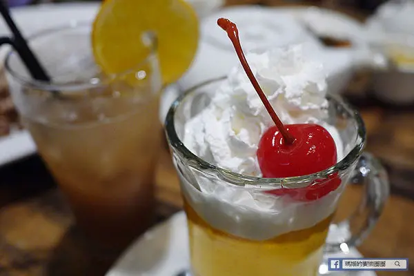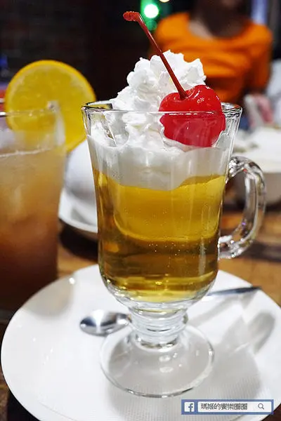 「蜜桃蘋果派」甜甜的蜜桃蘋果酒,加入了鮮奶油和櫻桃裝飾,喝起來溫熱中有奶香味溢出,濃度不高比較像甜甜的水果酒,特別適合女生