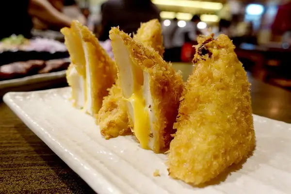 外層炸到非常酥脆,白色的部份是魚漿包著起司下鍋油炸