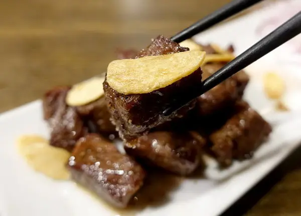 骰子牛肉本身就很好吃了 ~ 加了蒜片是有更加分的感