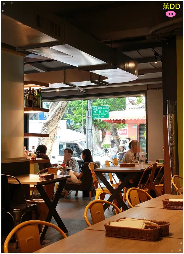 其實除了我們這區可以拼成長桌導致座位比較擁擠,其它幾乎都是獨立座位且彼此距離很寬敞,裝潢設計簡單舒適,再外加落地窗隨處可見窗外的綠樹,配本書喝個咖啡一不小心可能就會睡坐個一下午,這樣的用餐環境好適合文青。若你跟噗媽一樣不是文青也沒關係,這裡除了不收服務費之外,用餐時間也不限時,也很適合三姑六婆(像噗媽)來聚餐。