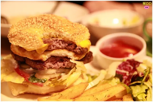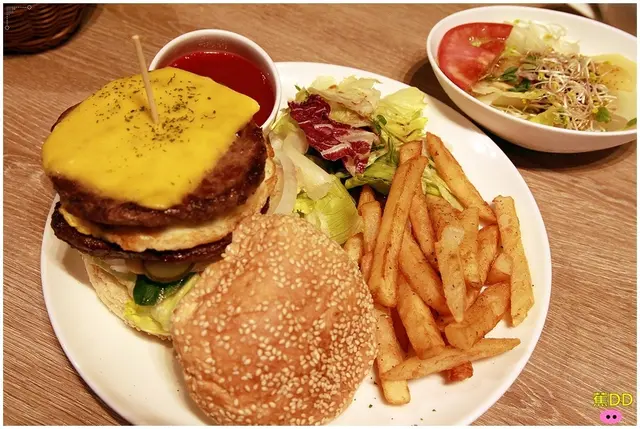 噗爸每每在點餐的一個最大原則就是選肉一定要多的餐點,這次選的漢堡有兩層漢堡肉,口味結合美式跟台式(噗媽覺得偏台式多點),台式的感覺是裡面有夾荷包蛋(算蠻特別的口感),整體上噗爸還蠻滿意『派森特製牛肉漢堡』的。