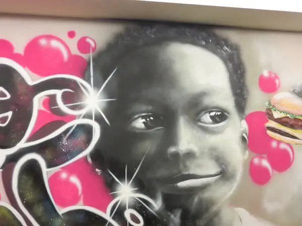 我很喜歡他牆壁上小女孩對漢堡的幻想