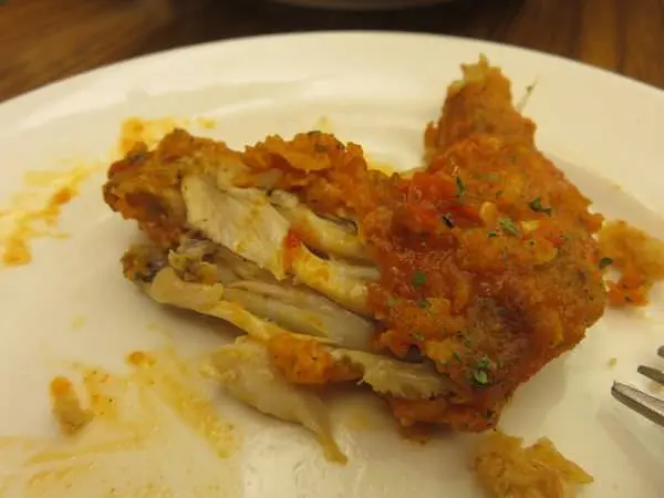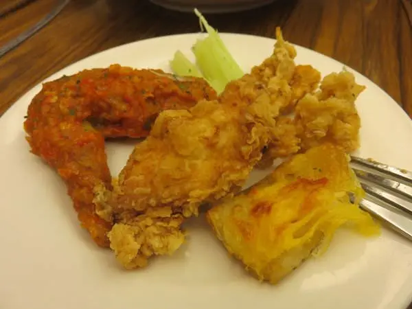 炸雞皮就稍微崩塌些,肉嫩但是外皮如更緊實會更好