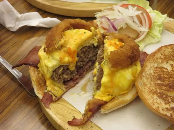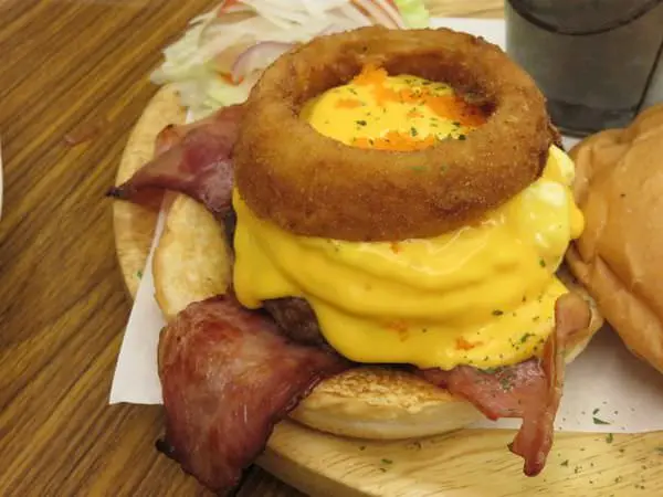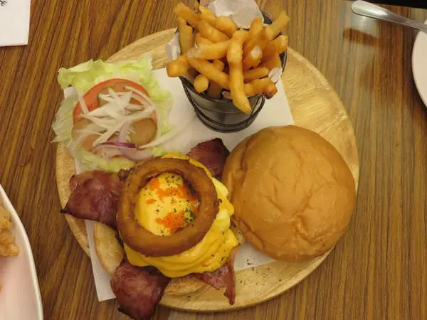 手打漢堡肉、大塊炸洋蔥、生菜們加上店家特製醬料