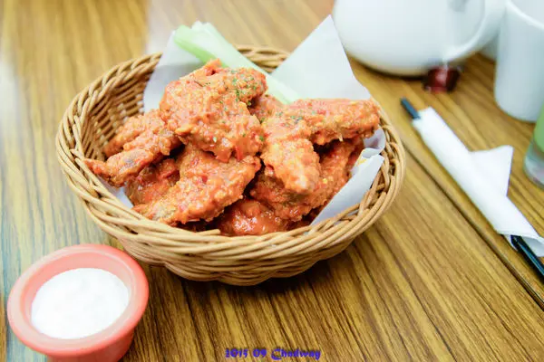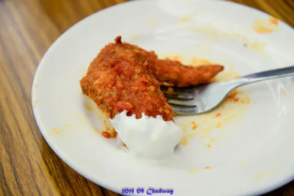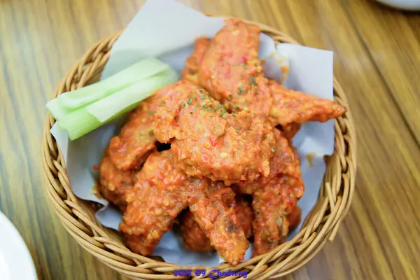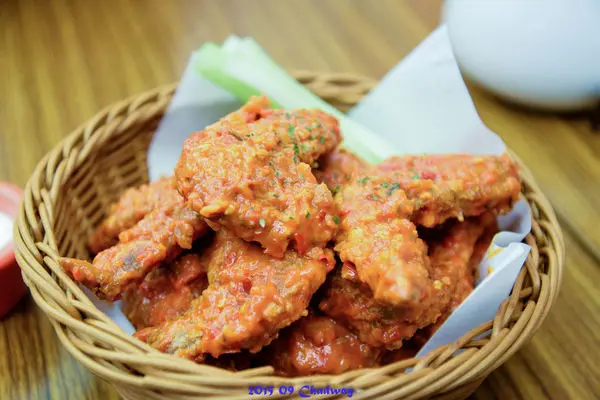 先烤過後再炸的雞翅後外面再沾上許多店家特製的辛香料