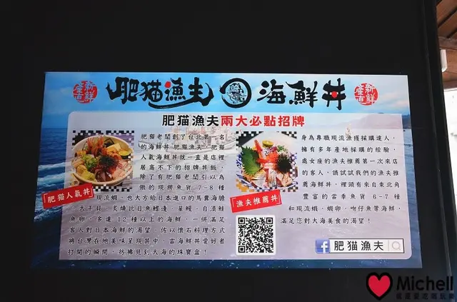 一旁的牆上寫著肥貓漁夫的由來........