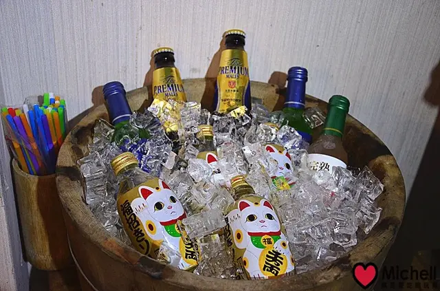 木桶內.........有來自日本的飲料、酒供客人選擇~
