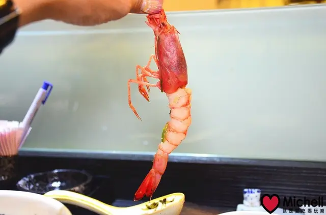 現流蝦 來自台灣東北角的現流蝦,蝦肉好鮮好甜喔!就連那甜蝦的頭有著滿滿的蝦膏,