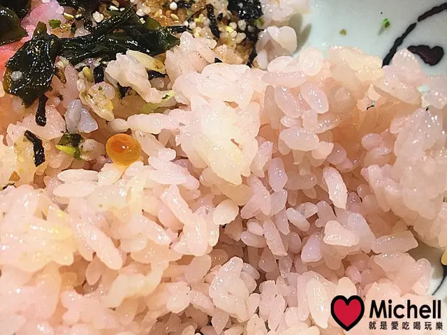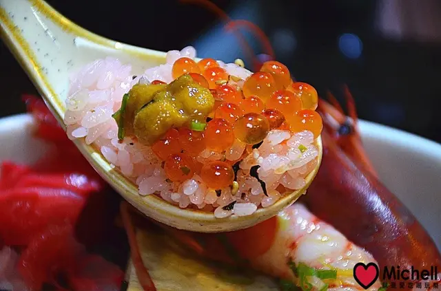 酸度適中、吃起來超級開胃,搭配上那肥美、晶瑩剔透鮭魚卵.........