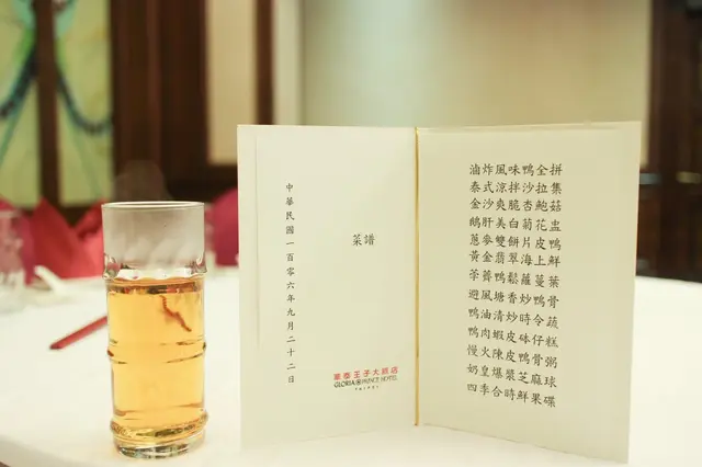 也有一些流程比較不同,菜色比較多外,也因為要統一管理80個人所以省卻『選茶』步驟,九華樓茶資NT.80+10%,還有個很特別的聞香杯喔!這是讓每一位客人選出自己想喝的茶葉,而不是像傳統大圓桌中菜那樣,全部的人都喝同一種茶>>>不過,我們今天就是所有人都喝同一種茶喔(大笑