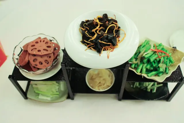 上層是三款開胃菜,下層是稍後片鴨可以夾的蔥段等等,帶著中藥香的黑木耳和蓮藕片很令人印象深刻,好吃的蓮藕片不易處理,九華樓的蓮藕片帶著蓮藕清香不過硬,口感剛剛好