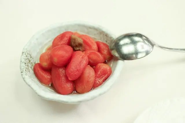 說起開胃菜就不能忘記梅漬番茄,利用冰糖中和番茄的酸味,加入甘甜的梅子,醃漬出富有鹹、酸、甜味的涼拌小品,若是吃現代中菜沒吃到這道,那可是比起大菜不夠好吃來的讓人空虛感呢