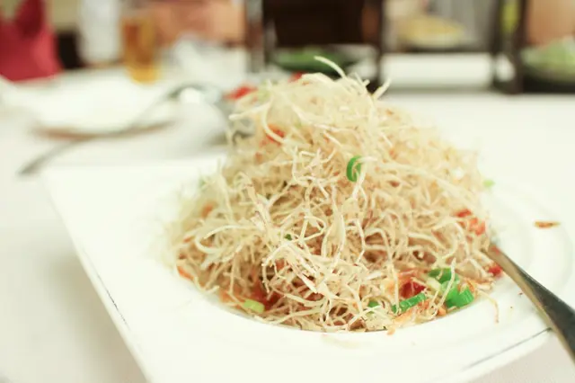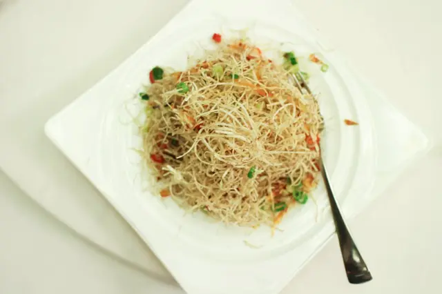 到了開胃菜最後一道,傳統芋頭籤會和地瓜或九層塔一起油炸,這裏的芋頭很香,來不及詢問選哪裡的芋頭,芋頭完全不需要佐味,獨攬大局,切成絲油炸後掩不住芋頭香氣,還是要再三強調我不是很愛芋頭,絕大部份是不吃芋頭的,但九華樓的芋頭籤很可以