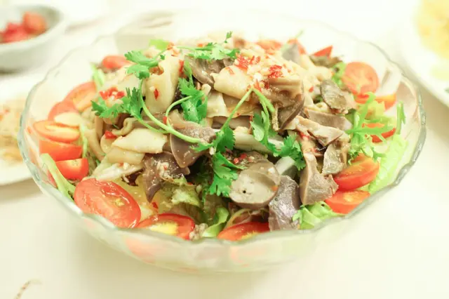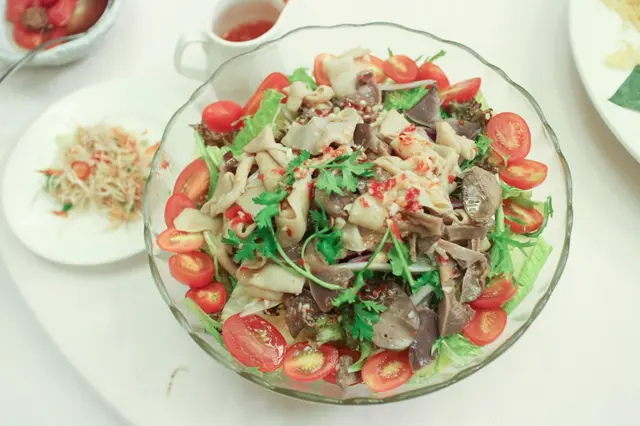 淋上泰式醬汁帶出清爽的滋味,算是很聰明的搭配,畢竟鴨肝、鴨胗、鴨腸是很容易上火的食材,加上酸辣涼拌醬汁確實中和了易膩的問題