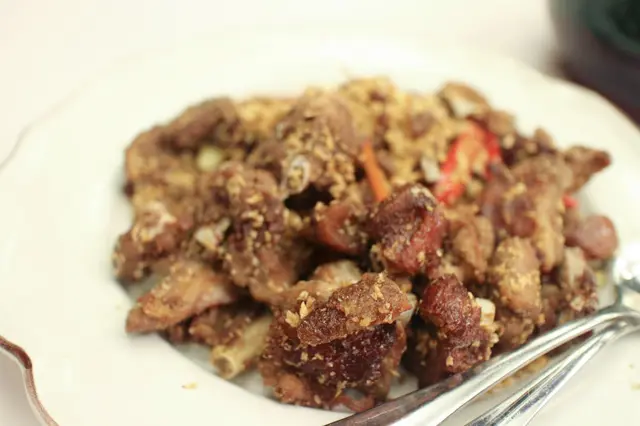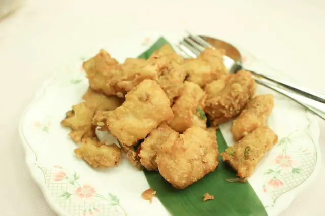 採用我最喜歡的避風塘料理手法、將鴨骨裹薄脆漿粉炸香,再加入蒜酥、辣椒一起香炒,實話說有點過柴,不是超出10%那種,可能有難以咀嚼的難耐,覺得有點可惜