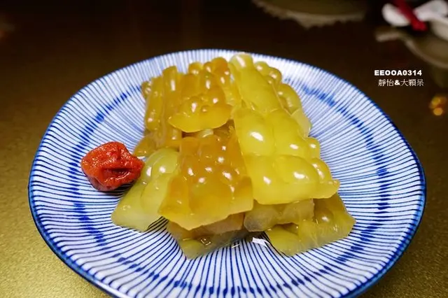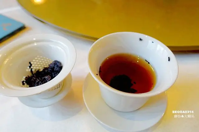 不同於一般的粵菜餐廳整桌都喝同一壺、單一口味的茶,【九華樓】用心規劃了蓋杯茶,讓每個人都可以選擇自己想要喝的茶,我選擇了純蘊蜜香的東方美人,大顆呆把拔則選了老柚茶,話說老柚茶很合我們的胃口,微酸甘醇還帶著濃濃的柚香,適合喜歡重口味的人!