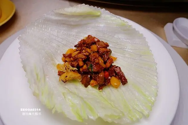 將鴨鬆包進生菜裡送進口中相當清爽,鴨肉很嫩口,完全不柴,還可以感受到荸薺的清脆感