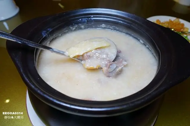 所有的精華都在這一鍋粥裡了,白粥裡只有鴨骨、鴨肉及薑片,可以吃到烤鴨的油脂香氣,美味又營養滿分