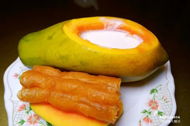 第一次見到木瓜搭配杏仁露及油條的組合,忍不住想點來嚐嚐其滋味