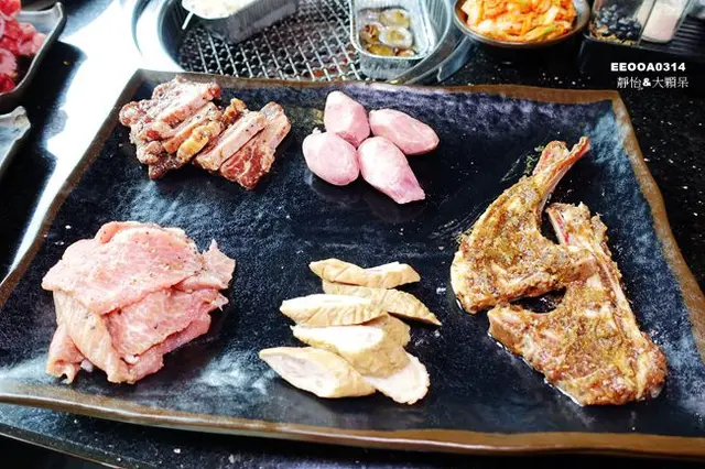 松阪豬、肥腸、羊排、牛小排及香腸等,有些肉品都已經有特殊調味囉,烤起來味道會比較香