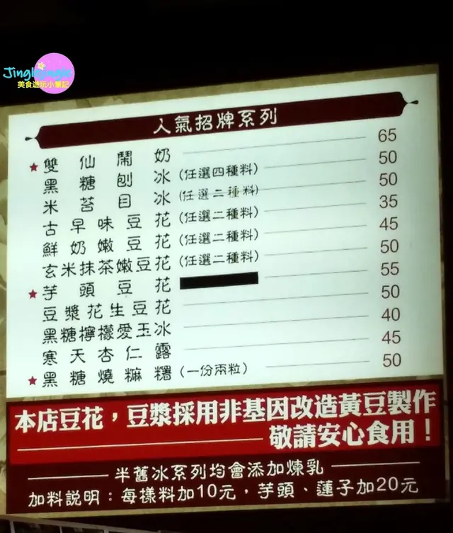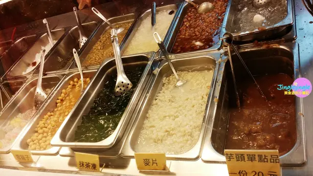 一些比較基本的配料比如珍珠、芋頭、綠豆、仙草凍應該是固定班底,我每次去都有~