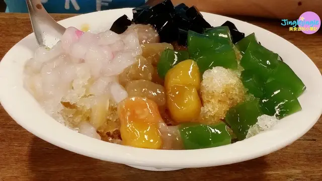這個料是配好的,主要有仙草凍、紅豆、芋園、杏仁凍