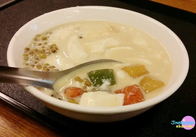 這也是豆漿豆花,配料選了綠豆跟綜合芋圓