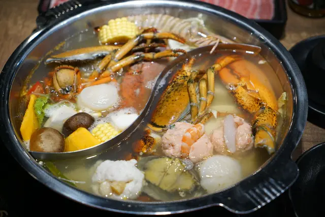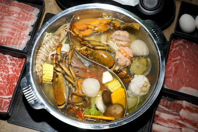 分成兩邊的原因是👉鴛鴦鍋是為了讓客人一邊煮海鮮一邊煮肉類,味道才不會互相干擾