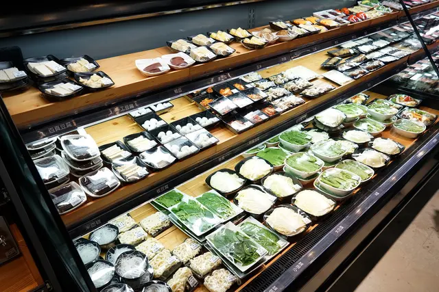 離最遠的是蔬菜、火鍋料、腐皮、王子麵應有盡有