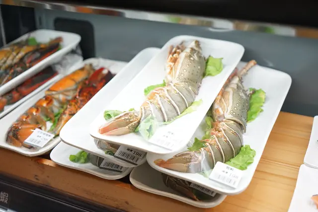 天使紅蝦、草蝦、魷魚、明蝦、龍蝦、干貝、鯛魚、鱸魚、章魚