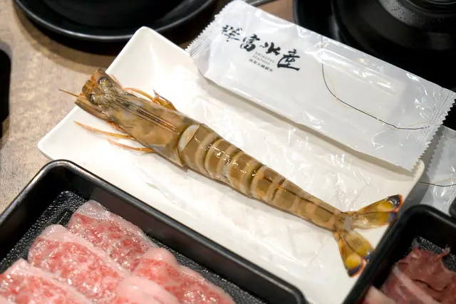 兩份半尾龍蝦(一份是188加購)、無骨牛小排178、菜盆100、手工丸子74(蟹肉、鮮蝦、帆立貝)、和牛207、野生明蝦112