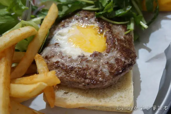 中間的牛肉漢堡排 中間鑲了一顆溏心蛋