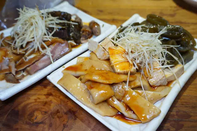 豬耳朵 $50 米血糕 $30 雞心 $30