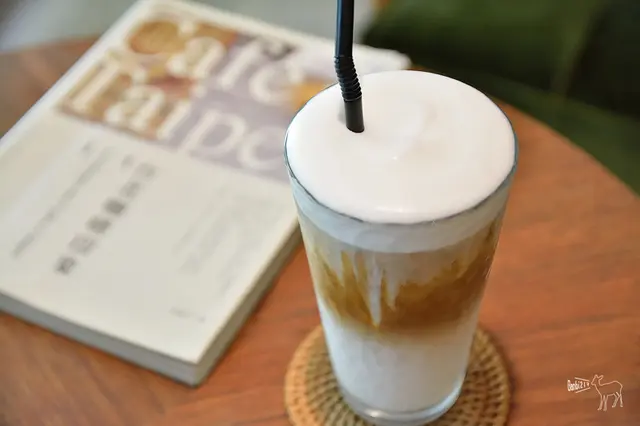 上方的奶泡很綿密,奶量比例剛好,咖啡喝起來是先微酸而後帶苦味感,味道濃而平順感。