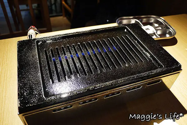 雙排式瓦斯烤盤,據說鑄鐵烤盤更能發揮食材特性,在大阪的燒肉店多半使用。