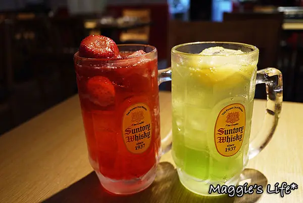 富士山龍有許多不同口味的「角嗨」,來台灣後多了限定口味,像是巨峰葡萄、奇異果、芒果、鳯梨等水果口味,我特別選了草莓和奇異果,紅配綠看了就美麗。(未成年請勿飲酒/請勿酒駕)