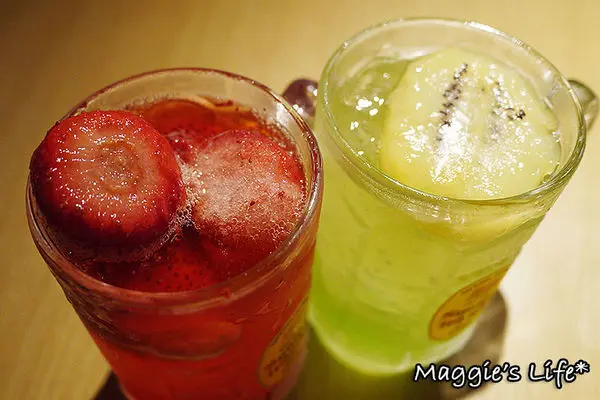 裡面可有新鮮的水果果肉喲!二種喝起來味道香甜,雖然有加了點威士忌但其實喝起來就像調酒,酒精濃度並不明顯,特別適合不喝酒的朋友。(未成年請勿飲酒/請勿酒駕)